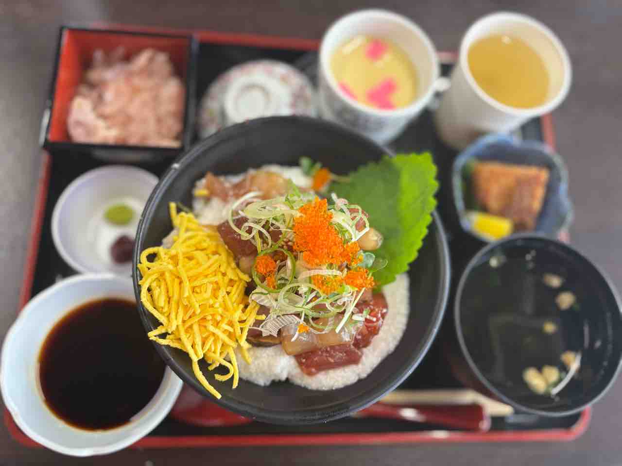 2025年12月05日 枕崎みなと食堂 リニューアルしてから初めて行きました🐟今日は、中学の同級生がご家族で来鹿。来鹿の目的は枕崎で鰹を食す枕崎で鰹を食すのならばココですよね。とお連れしたのが枕崎みなと食堂とってもワクワクな😀食堂になってました。私は地魚漬け丼を!ここは、削りたての鰹節と鰹の出汁はおかわり自由😆海を見ながら平日なのに賑わってるの、わかるわあー👍