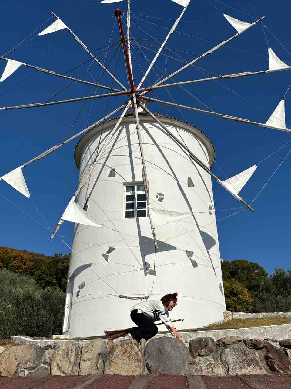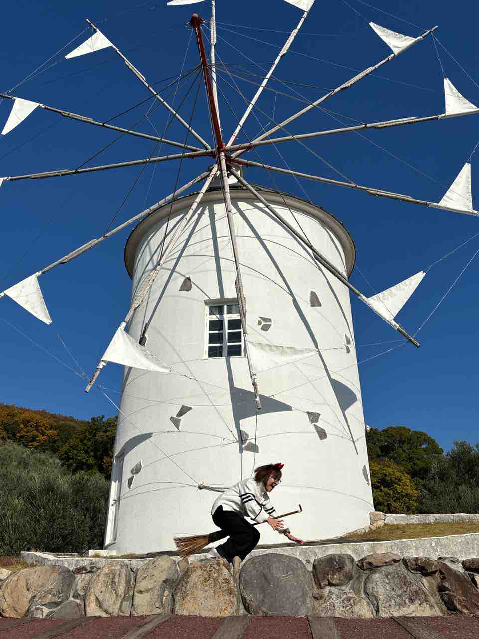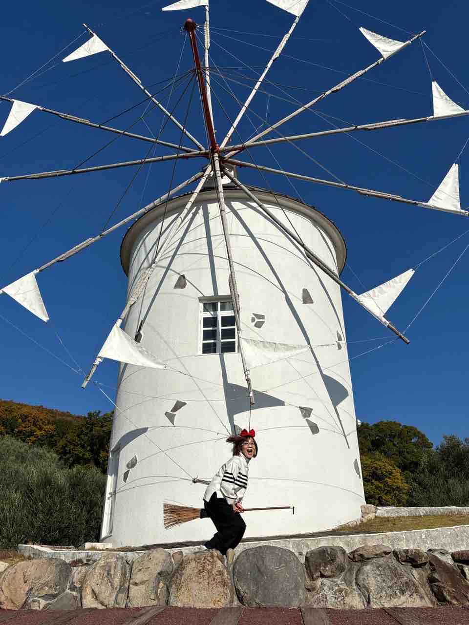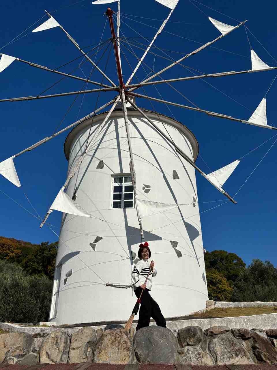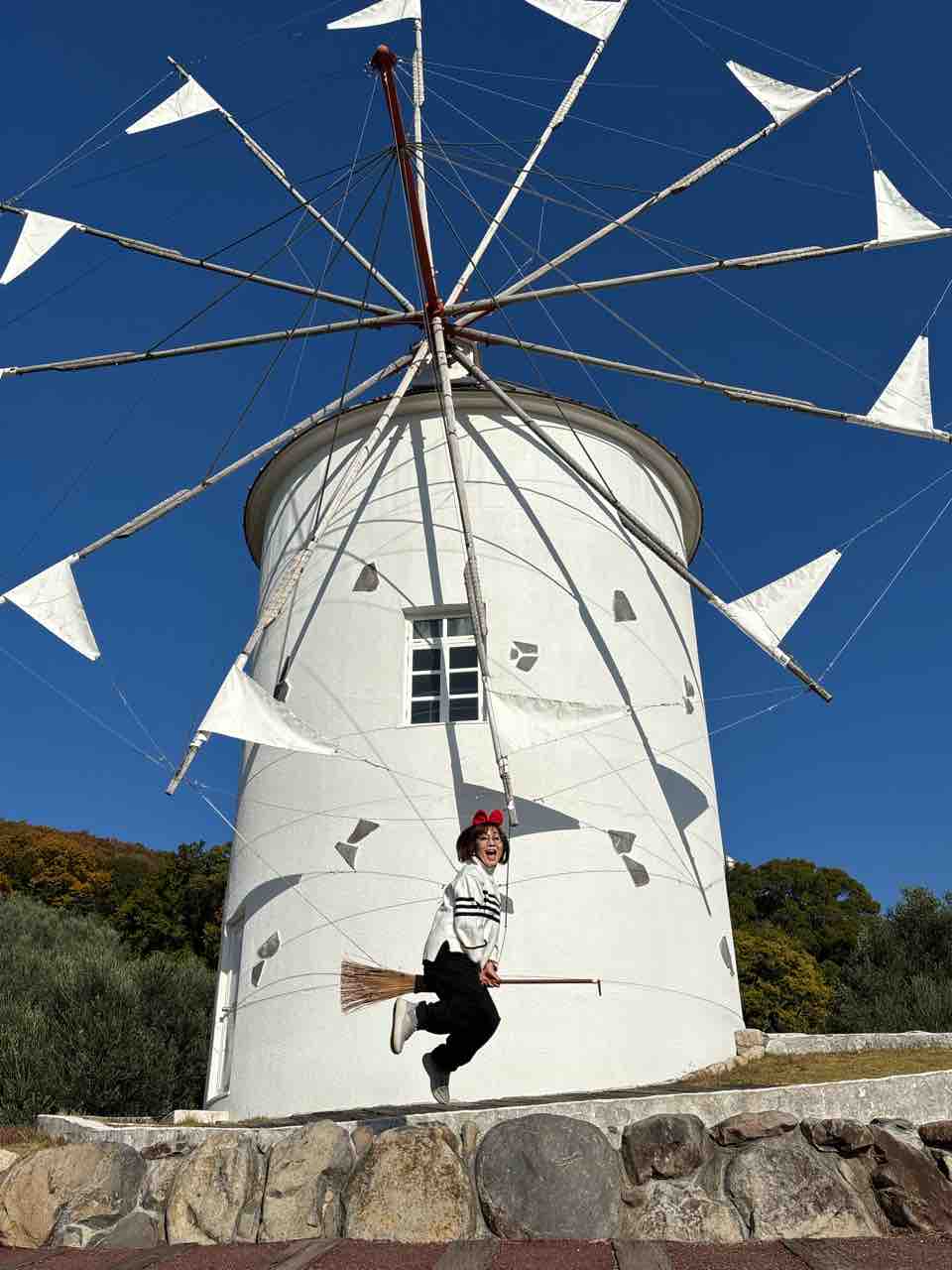 2025年12月03日 小豆島最終日 ホテルの朝景紅葉🍁イングリッシュ・ガーデンには薔薇🌹果樹園も🍇レモンがたわわ🍋まずは小豆島オリーブ公園へ皆んなでハート型の葉を探して栞にするワークショップオリーブ畑に入って必死探し、みーつけたー✌️そしてここは、実写版「魔女の宅急便」のロケ地ということで、箒は無料でレンタル可。カチューシャ🎀はリスナーさんからのプレゼント😭皆んなで飛んだ!私も飛んで!着地に失敗😔掃除して終了🧹さて、こちらは大好きな町並みでした😍エンジェルロード1日2回、干潮の時だけ現れ、島に歩いて渡れます。大切な人と手を繋いで渡ると幸せになれるそうです。1人で渡りましたけど😭小豆島から神戸に戻り、残り時間を惜しみつつ元町散策空港に向かう車窓からの夜景に後ろ髪引かれながら旅は終わりました。は〜😔