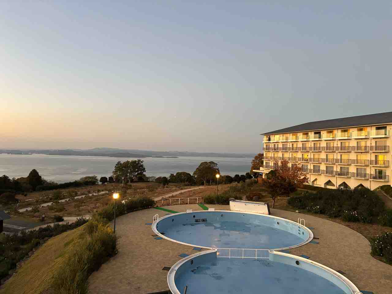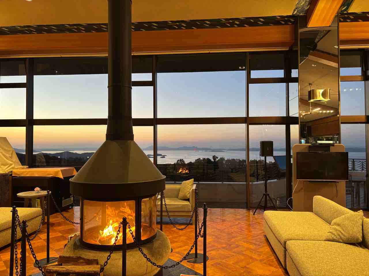 2025年12月02日 オリビアン小豆島夕陽ヶ丘ホテル 小豆島でのお泊まり 名前の通り真っ赤に染まる夕空にうっとり館内はあったかい雰囲気入り口にはレトロなバスポーズとってるつもり🤣2日目の夜は、食べて飲んでおしゃべりして(が忙しくて写真撮るの忘れた💧)ささやかな懇親会🍻あっという間に、明日が最終日なのでした😢