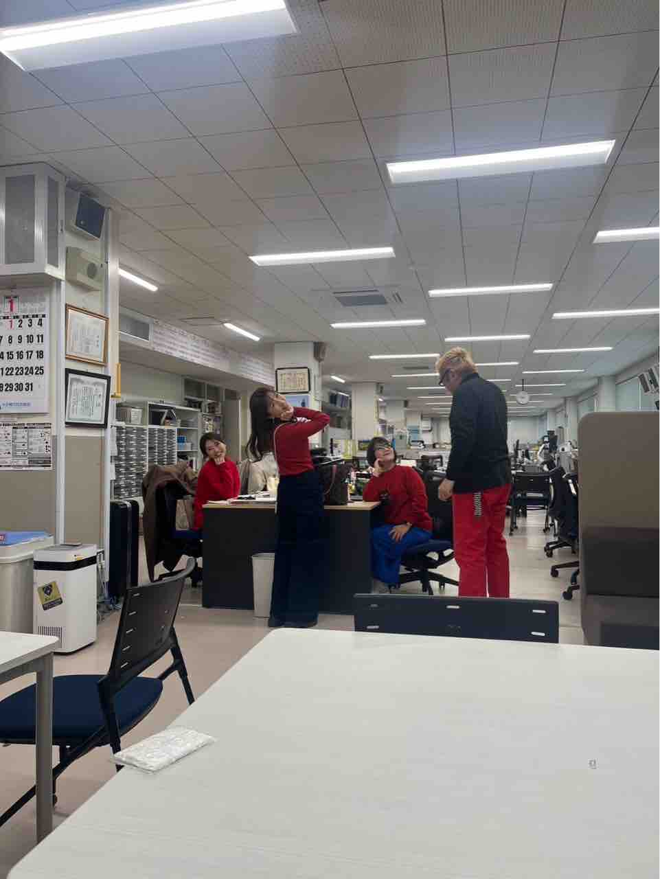 赤組は、スタジオでリスナーさんからいただいたよもぎ団子を山分け中🍡