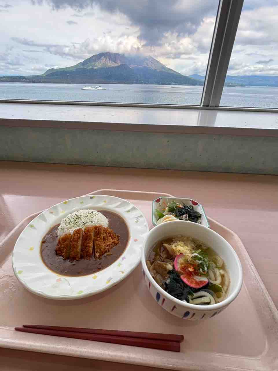 2025年09月03日 中村料理長に会いに 職場訪問という名のお昼ご飯🍚キッチンマジックでお馴染みの中村芳雄さんの職場南日本新聞社の社員食堂へ❣️ 12階にある食堂からの眺望を観ながらの今日のランチはカツカレー・小どんぶりの肉うどん・サラダめっちゃ美味しいし盛り付けが綺麗😍完食でしたあ。食事の後、記念写真📷中村さんでーす🔻10月13日の公開生放送へのご出演もお願いしてきましたよー✌️ カテゴリなしの他の記事